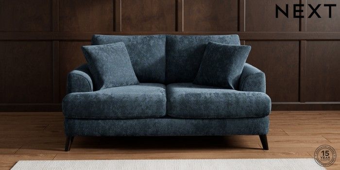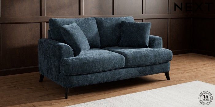 7.0.3 Buy Parker 3 Seater Small Sofa Distressed Velour Midnight Blue Low Retro Tapered - Dark from the Next UK online shop Click here to use our accessible website