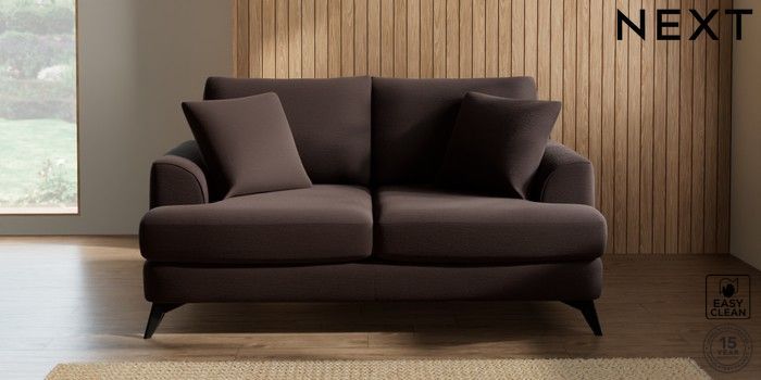 7.2.5 Buy Parker 3 Seater Small Sofa Fine Chenille Easy Clean Chocolate Brown High Metal - Black from the Next UK online shop Click here to use our accessible website