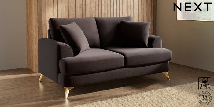 7.3.1 Buy Parker 3 Seater Small Sofa Fine Chenille Easy Clean Chocolate Brown High Metal - Brass from the Next UK online shop Click here to use our accessible website
