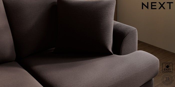 7.2.10 Buy Parker 3 Seater Small Sofa Fine Chenille Easy Clean Chocolate Brown Low Retro Tapered - Mid from the Next UK online shop Click here to use our accessible website