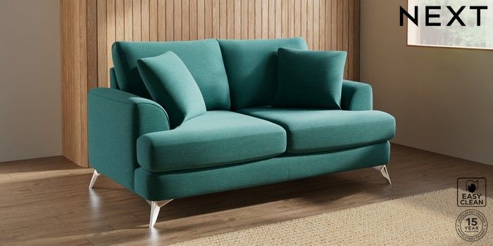 7.0.3 Buy Parker 3 Seater Small Sofa Fine Chenille Easy Clean Dark Juniper Green High Metal - Chrome from the Next UK online shop Click here to use our accessible website