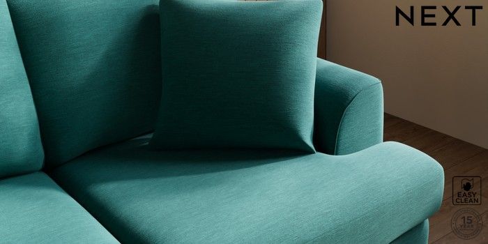 7.3.1 Buy Parker 3 Seater Small Sofa Fine Chenille Easy Clean Dark Juniper Green Low Retro Tapered - Light from the Next UK online shop Click here to use our accessible website