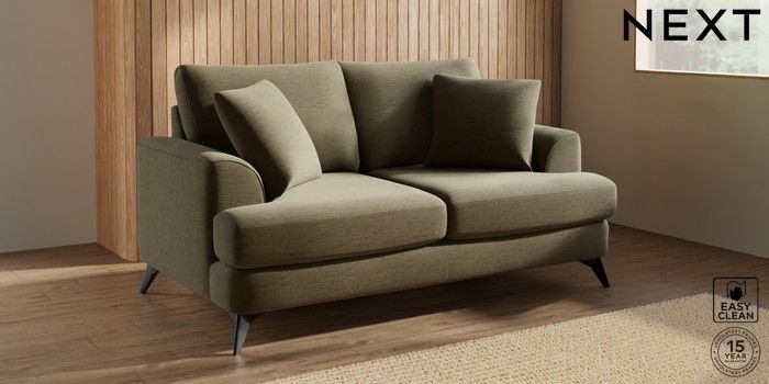 7.3.1 Buy Parker 3 Seater Small Sofa Fine Chenille Easy Clean Dark Moss Green High Metal - Black from the Next UK online shop Click here to use our accessible website