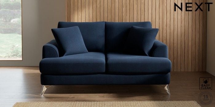 7.2.5 Buy Parker 3 Seater Small Sofa Fine Chenille Easy Clean Dark Navy Blue High Metal - Chrome from the Next UK online shop Click here to use our accessible website