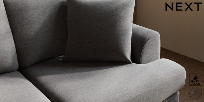 7.3.1 Buy Parker 3 Seater Small Sofa Fine Chenille Easy Clean Dark Smoke Grey High Metal - Black from the Next UK online shop Click here to use our accessible website