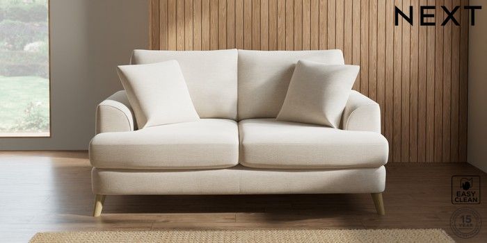 7.2.5 Buy Parker 3 Seater Small Sofa Fine Chenille Easy Clean Oyster Low Retro Tapered - Light from the Next UK online shop Click here to use our accessible website
