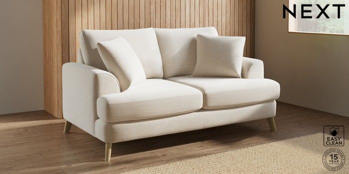 7.2.10 Buy Parker 3 Seater Small Sofa Fine Chenille Easy Clean Oyster Low Retro Tapered - Light from the Next UK online shop Click here to use our accessible website