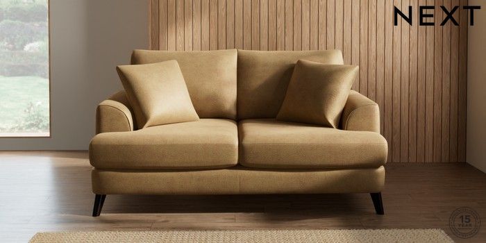 7.0.3 Buy Parker 3 Seater Small Sofa Luxe Chenille Honey Yellow Low Retro Tapered - Dark from the Next UK online shop Click here to use our accessible website