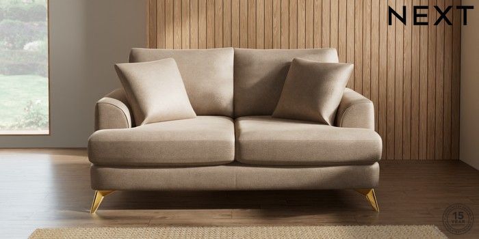7.2.5 Buy Parker 3 Seater Small Sofa Luxe Chenille Mid Camel Beige High Metal - Brass from the Next UK online shop Click here to use our accessible website