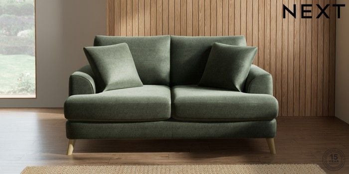 7.0.3 Buy Parker 3 Seater Small Sofa Luxe Chenille Mid Green Low Retro Tapered - Light from the Next UK online shop Click here to use our accessible website