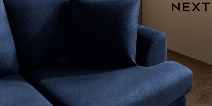 7.3.1 Buy Parker 3 Seater Small Sofa Luxe Chenille Navy Blue High Metal - Brass from the Next UK online shop Click here to use our accessible website