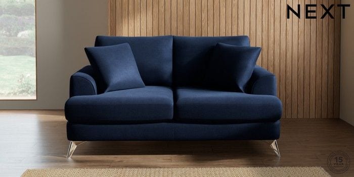 7.2.5 Buy Parker 3 Seater Small Sofa Luxe Chenille Navy Blue High Metal - Chrome from the Next UK online shop Click here to use our accessible website