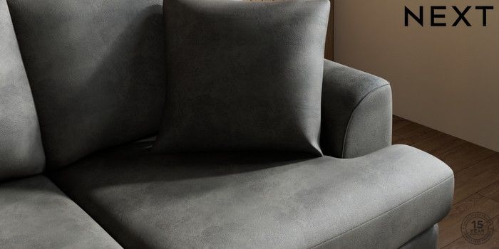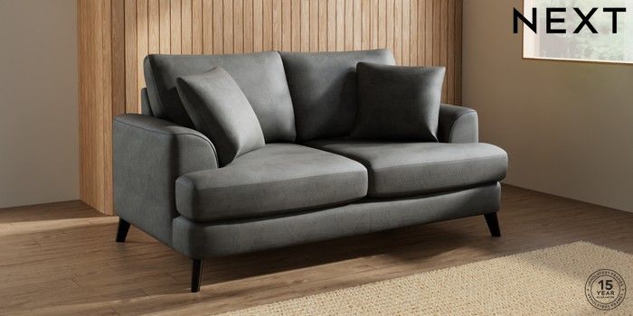 7.3.1 Buy Parker 3 Seater Small Sofa Monza Faux Leather Easy Clean Dark Grey Low Retro Tapered - Dark from the Next UK online shop Click here to use our accessible website