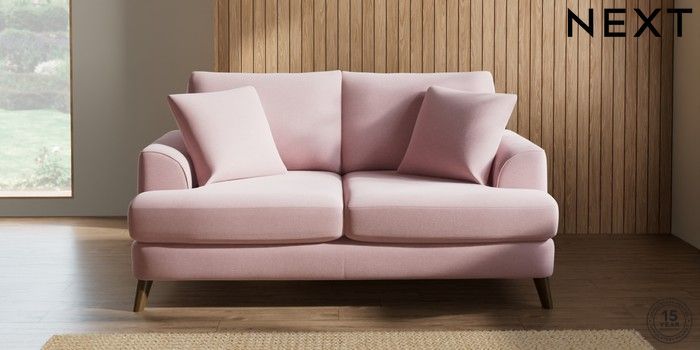 7.2.5 Buy Parker 3 Seater Small Sofa Natural Mix Light Rose Pink Low Retro Tapered - Mid from the Next UK online shop Click here to use our accessible website