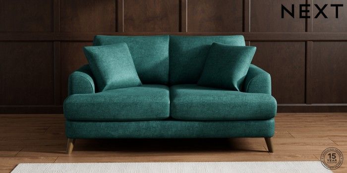 7.2.5 Buy Parker 3 Seater Small Sofa Plush Chenille Dark Teal Green Low Retro Tapered - Mid from the Next UK online shop Click here to use our accessible website