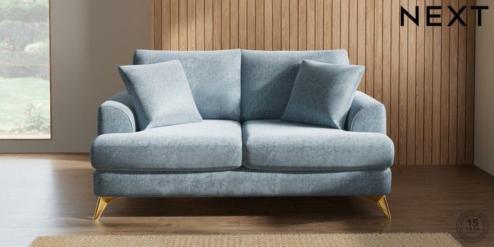 7.2.6 Buy Parker 3 Seater Small Sofa Plush Chenille Light Blue High Metal - Brass from the Next UK online shop Click here to use our accessible website
