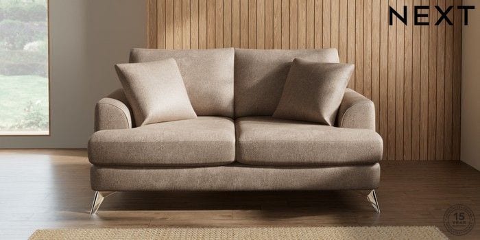 7.2.5 Buy Parker 3 Seater Small Sofa Plush Chenille Mid Natural High Metal - Chrome from the Next UK online shop Click here to use our accessible website