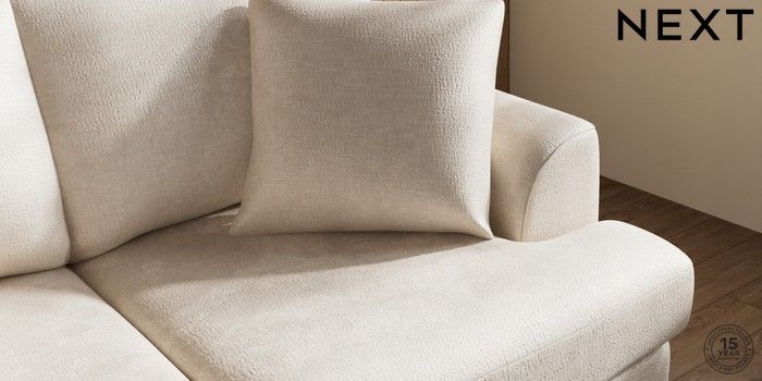 7.2.10 Buy Parker 3 Seater Small Sofa Plush Chenille Oyster Low Retro Tapered - Mid from the Next UK online shop Click here to use our accessible website