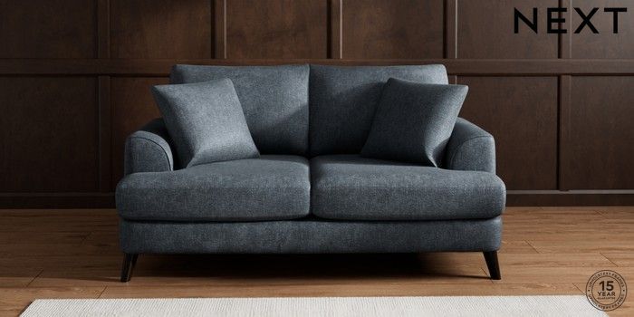 7.2.6 Buy Parker 3 Seater Small Sofa Plush Chenille Slate Blue Low Retro Tapered - Dark from the Next UK online shop Click here to use our accessible website
