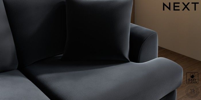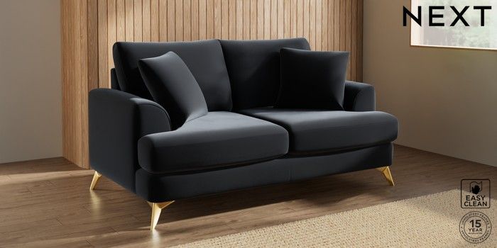 7.3.1 Buy Parker 3 Seater Small Sofa Plush Velvet Easy Clean Charcoal Grey High Metal - Brass from the Next UK online shop Click here to use our accessible website