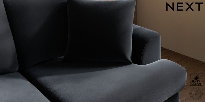 7.3.1 Buy Parker 3 Seater Small Sofa Plush Velvet Easy Clean Charcoal Grey Low Retro Tapered - Dark from the Next UK online shop Click here to use our accessible website
