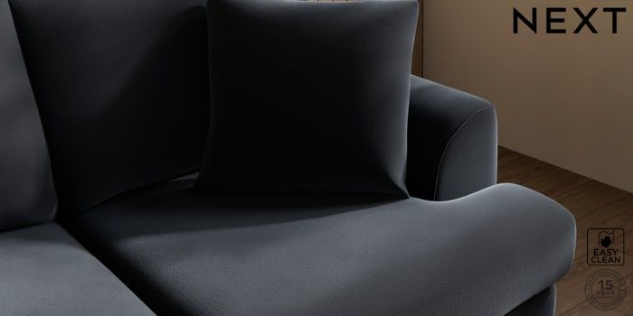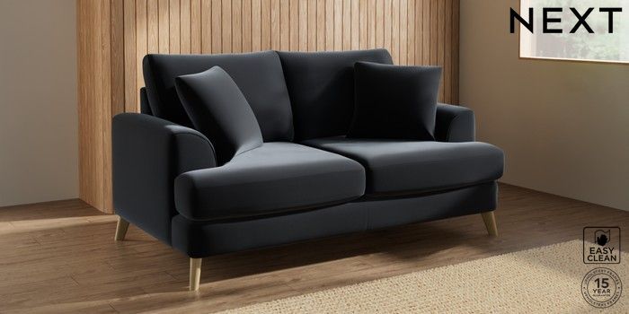 7.3.1 Buy Parker 3 Seater Small Sofa Plush Velvet Easy Clean Charcoal Grey Low Retro Tapered - Light from the Next UK online shop Click here to use our accessible website