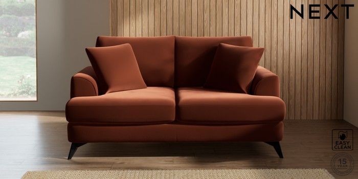 7.2.5 Buy Parker 3 Seater Small Sofa Plush Velvet Easy Clean Ginger Orange High Metal - Black from the Next UK online shop Click here to use our accessible website