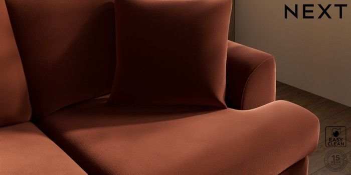 7.3.1 Buy Parker 3 Seater Small Sofa Plush Velvet Easy Clean Ginger Orange High Metal - Brass from the Next UK online shop Click here to use our accessible website