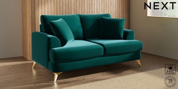 7.3.1 Buy Parker 3 Seater Small Sofa Plush Velvet Easy Clean Juniper Green High Metal - Brass from the Next UK online shop Click here to use our accessible website