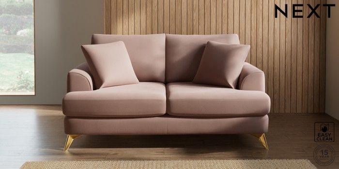 7.2.5 Buy Parker 3 Seater Small Sofa Plush Velvet Easy Clean Mid Natural High Metal - Brass from the Next UK online shop Click here to use our accessible website