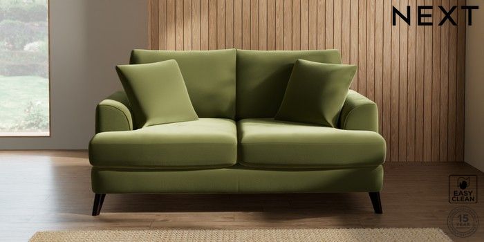 7.2.5 Buy Parker 3 Seater Small Sofa Plush Velvet Easy Clean Mid Olive Green Low Retro Tapered - Dark from the Next UK online shop Click here to use our accessible website