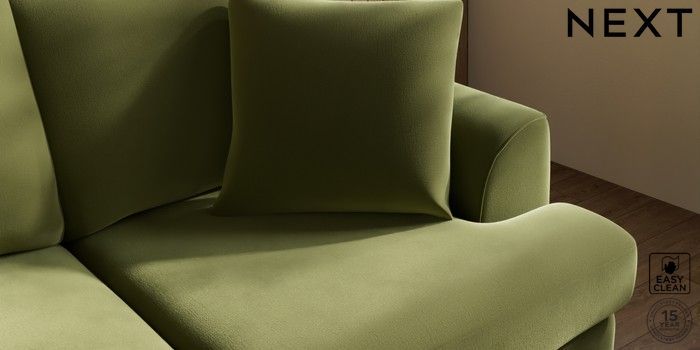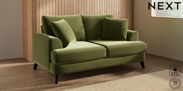 7.3.1 Buy Parker 3 Seater Small Sofa Plush Velvet Easy Clean Mid Olive Green Low Retro Tapered - Dark from the Next UK online shop Click here to use our accessible website