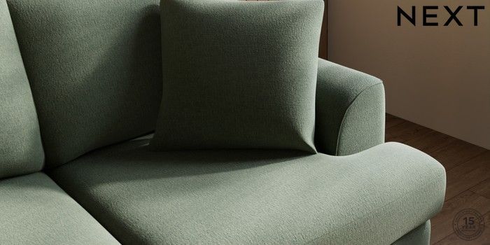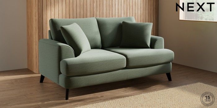 7.3.1 Buy Parker 3 Seater Small Sofa Relaxed Linen Look Dark Green Low Retro Tapered - Dark from the Next UK online shop Click here to use our accessible website
