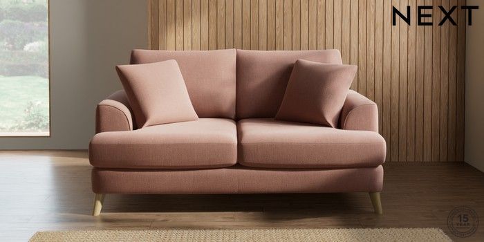 7.2.5 Buy Parker 3 Seater Small Sofa Relaxed Linen Look Light Rust Brown Low Retro Tapered - Light from the Next UK online shop Click here to use our accessible website