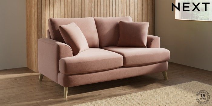 7.2.10 Buy Parker 3 Seater Small Sofa Relaxed Linen Look Light Rust Brown Low Retro Tapered - Light from the Next UK online shop Click here to use our accessible website