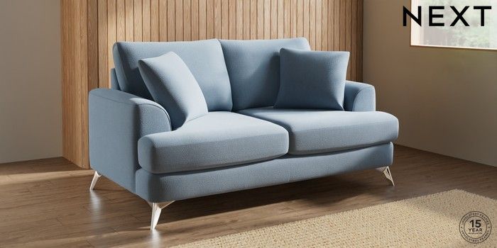 7.3.1 Buy Parker 3 Seater Small Sofa Relaxed Linen Look Mid Blue High Metal - Chrome from the Next UK online shop Click here to use our accessible website