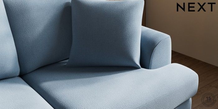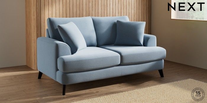 7.3.1 Buy Parker 3 Seater Small Sofa Relaxed Linen Look Mid Blue Low Retro Tapered - Dark from the Next UK online shop Click here to use our accessible website