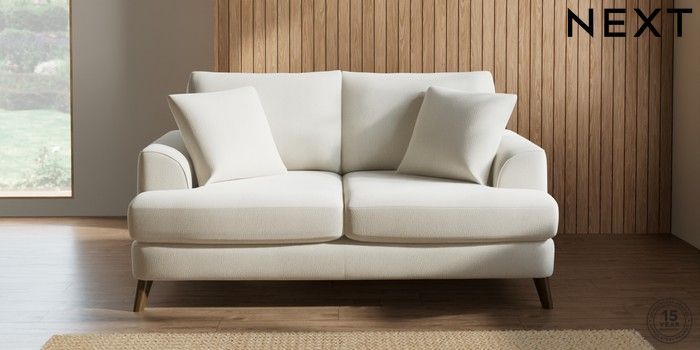 7.2.5 Buy Parker 3 Seater Small Sofa Relaxed Linen Look Oyster Low Retro Tapered - Mid from the Next UK online shop Click here to use our accessible website
