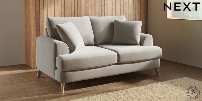 7.2.10 Buy Parker 3 Seater Small Sofa Ripple Chenille Light Natural Low Retro Tapered - Light from the Next UK online shop Click here to use our accessible website