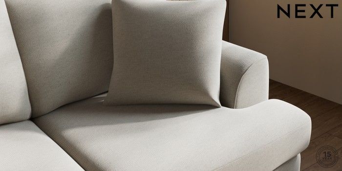 7.2.10 Buy Parker 3 Seater Small Sofa Ripple Chenille Light Natural Low Retro Tapered - Mid from the Next UK online shop Click here to use our accessible website
