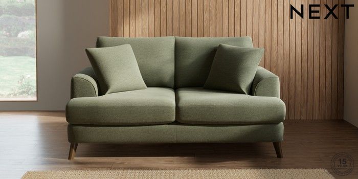 7.2.5 Buy Parker 3 Seater Small Sofa Ripple Chenille Mid Moss Green Low Retro Tapered - Mid from the Next UK online shop Click here to use our accessible website
