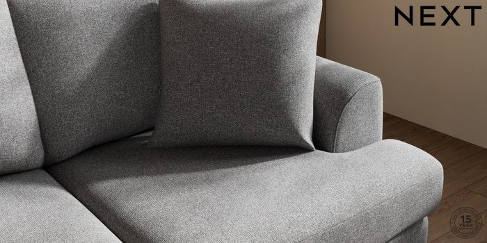 7.2.10 Buy Parker 3 Seater Small Sofa Studio Chenille Mid Grey High Metal - Brass from the Next UK online shop Click here to use our accessible website
