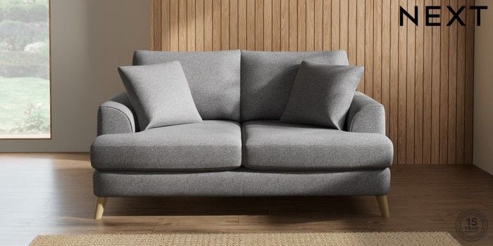 7.2.5 Buy Parker 3 Seater Small Sofa Studio Chenille Mid Grey Low Retro Tapered - Light from the Next UK online shop Click here to use our accessible website