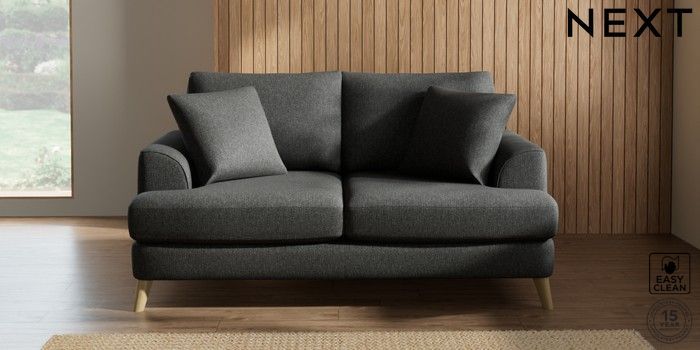 7.2.5 Buy Parker 3 Seater Small Sofa Tweedy Blend Easy Clean Charcoal Grey Low Retro Tapered - Light from the Next UK online shop Click here to use our accessible website