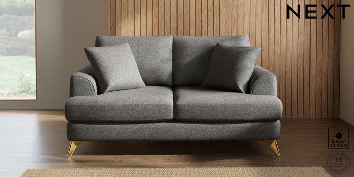 7.2.5 Buy Parker 3 Seater Small Sofa Tweedy Blend Easy Clean Dark Grey High Metal - Brass from the Next UK online shop Click here to use our accessible website
