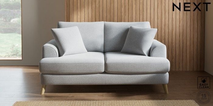 7.2.5 Buy Parker 3 Seater Small Sofa Tweedy Blend Easy Clean Light Silver Grey Low Retro Tapered - Light from the Next UK online shop Click here to use our accessible website