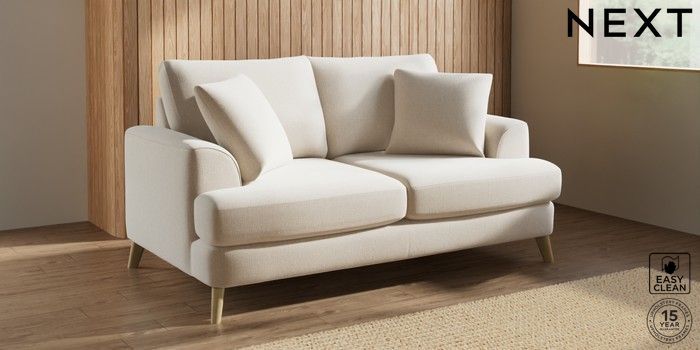7.3.1 Buy Parker 3 Seater Small Sofa Tweedy Blend Easy Clean Oyster Low Retro Tapered - Light from the Next UK online shop Click here to use our accessible website