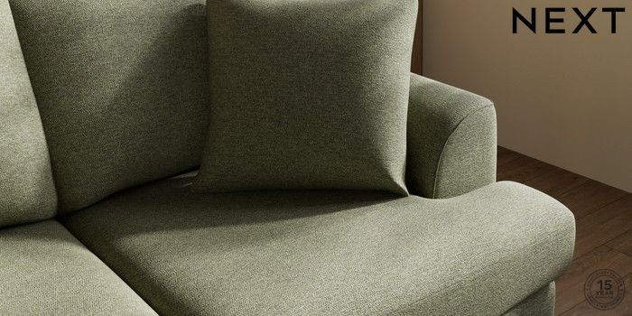 7.3.1 Buy Parker 3 Seater Small Sofa Tweedy Chenille Mid Moss Green High Metal - Chrome from the Next UK online shop Click here to use our accessible website