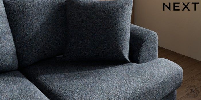 7.3.1 Buy Parker 3 Seater Small Sofa Tweedy Chenille Navy Blue Low Retro Tapered - Dark from the Next UK online shop Click here to use our accessible website