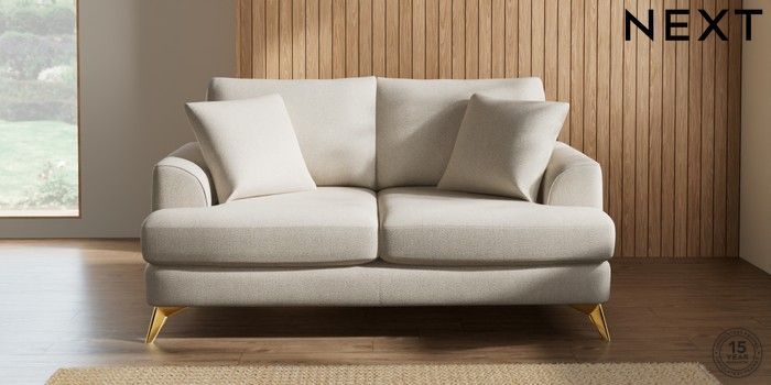 7.2.5 Buy Parker 3 Seater Small Sofa Tweedy Chenille Oyster High Metal - Brass from the Next UK online shop Click here to use our accessible website